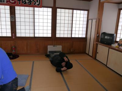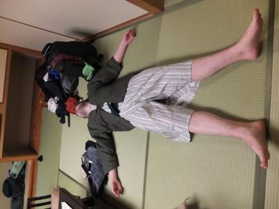 Nachdem wir zwei heiße Quellen besucht hatten ging es zurück zum Zimmer. Ohne ein richtiges Abkühlen ging ich dann erstmal für eine halbe Stunde in die natürliche Seestern-Haltung.