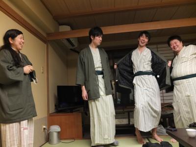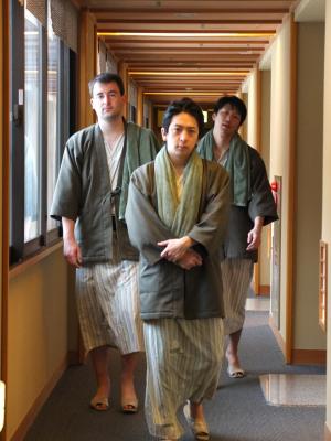 Als wir uns erstmal eingerichtet hatten kam das Umziehen. Jeder musste traditionelle japanische Kleidung anziehen.