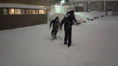 Draußen gab es dann erstmal ein Geplänkel im Schnee. Die Kollegen hatten ja bisher nur selten so viel Schnee gesehen.